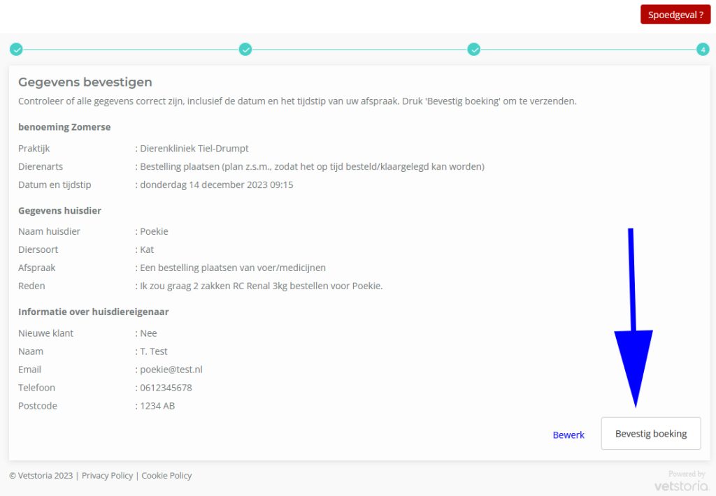 - Bij het type afspraak kiest u de onderste mogelijkheid: “Een bestelling plaatsen van voer/medicijnen”.